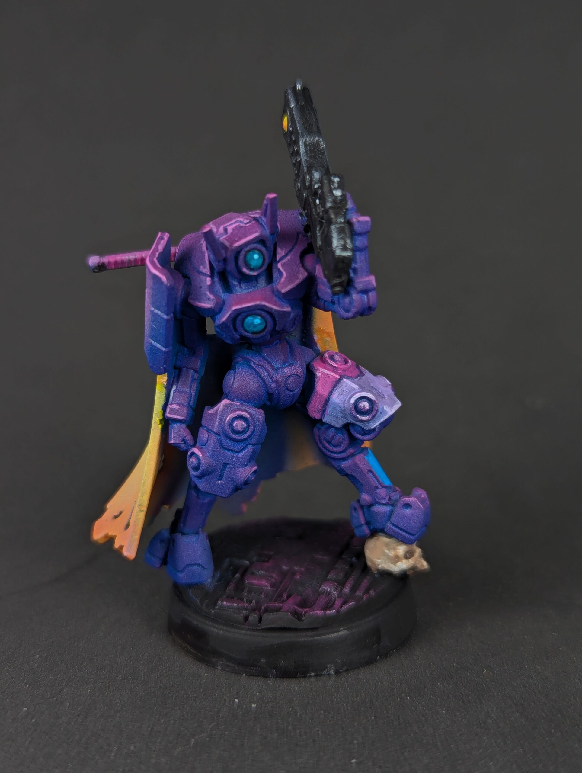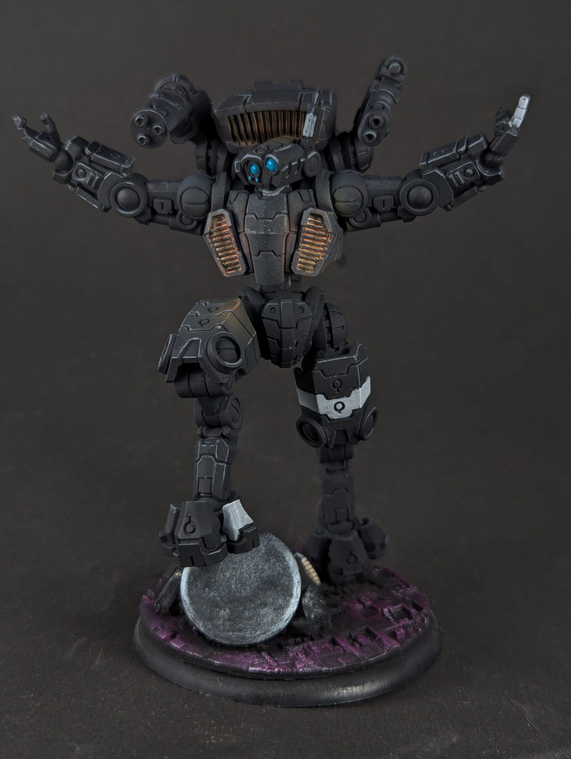 Enter mister airbrush and some black primer, to get into almost every crevice for some nice soft shadows. The result was some stained, worn-looking tarps which I’m quite pleased with and which should work for nearly any setting I play; fantasy, SF, cyberpunk, grimdark, etc. I plan to do some actual-pretty containers for SF and fantasy in the near future, and use cheesecloth as cargo netting, but for now I’ve got cover and line of sigh blockers!