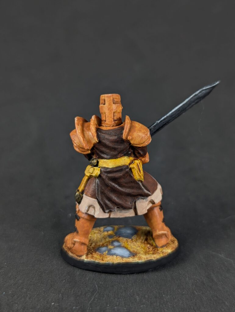 Last of the completed knights so far, I’ve lost my reference image but I based this fella off a spider. Mostly I’m pleased with the sort of panel lining I managed on his armour with a brown wash. The colour works out pretty nicely, too, distinct and thematic. I might use more browns around copper NMM in the future.