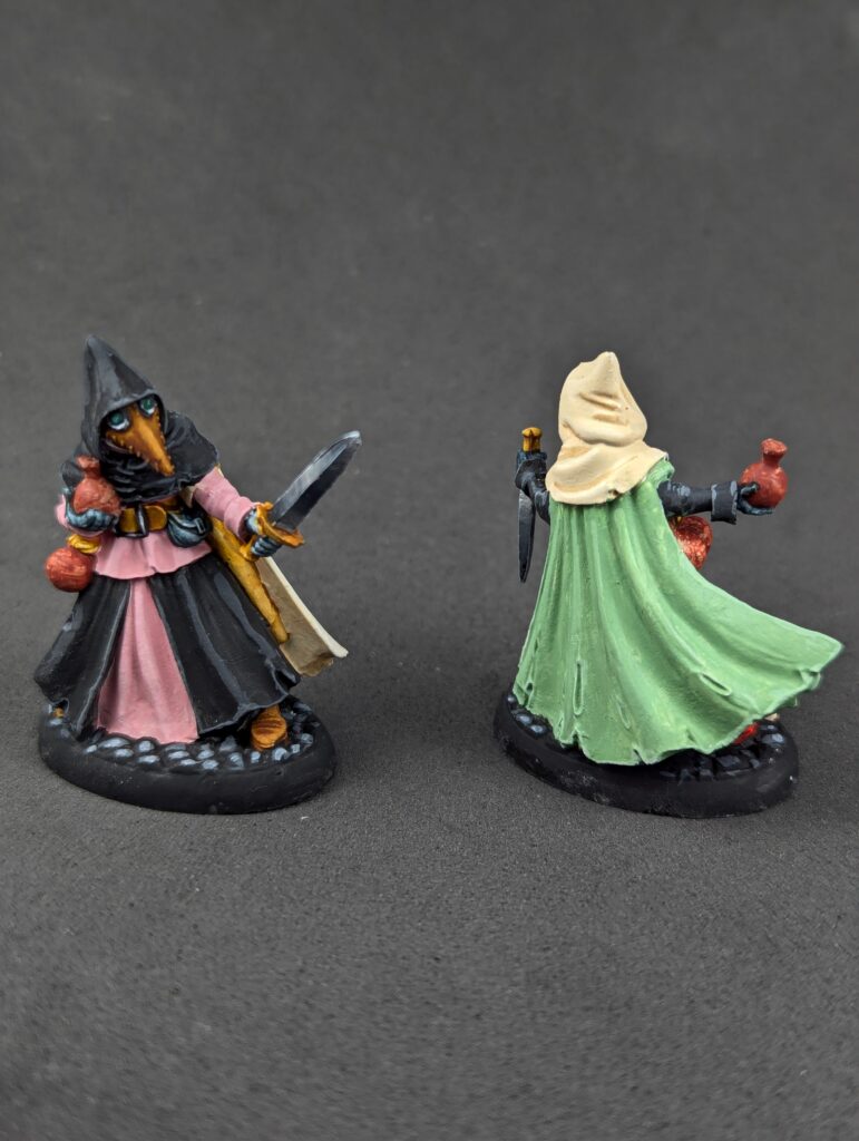 Then I painted up a couple of alchemtists with plague doctor masks, and tried out some more of my new NMM steel technique. Not too bad. Certainly way better than when I started. Colours were picked from manuscript reference images from the 16th-ish century iirc.